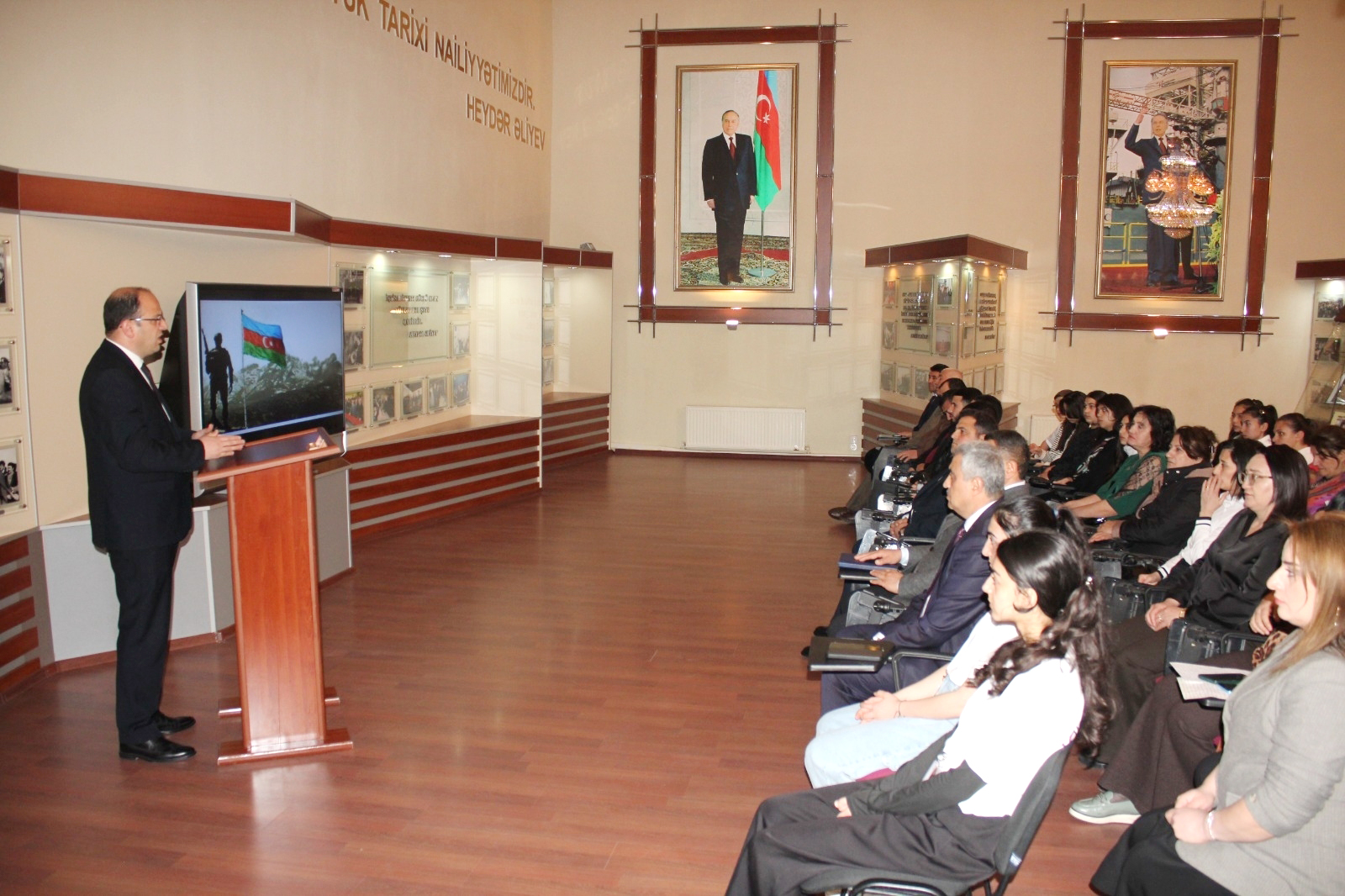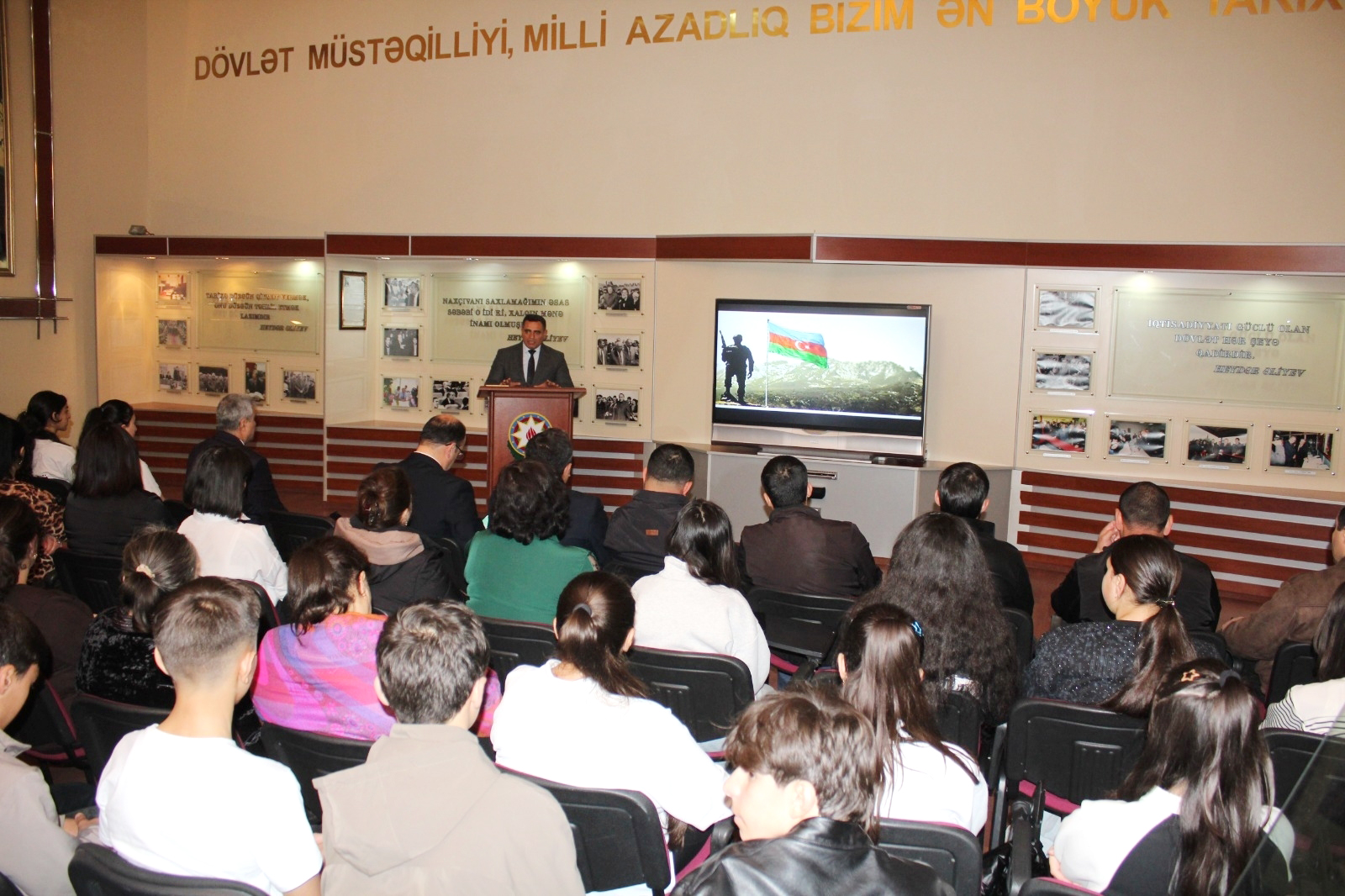 Əvvəlcə Dövlət Himni səsləndirilib, Ümummilli Lider Heydər Əliyevin və şəhidlərimizin əziz xatirəsi bir dəqiqəlik sükutla yad olunub.